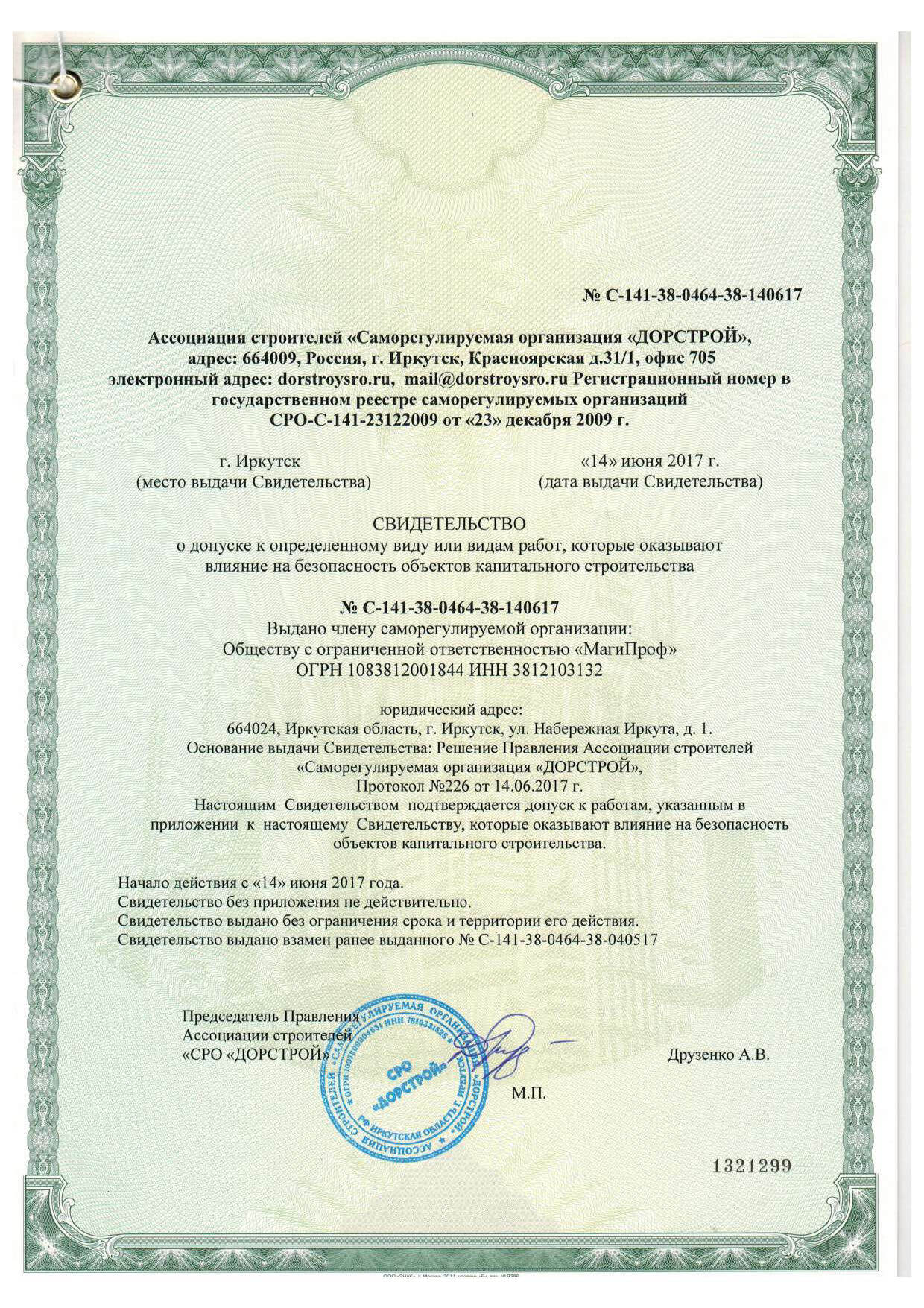 Являемся членом Ассоциации строителей «Саморегулируемая организация «ДОРСТРОЙ»