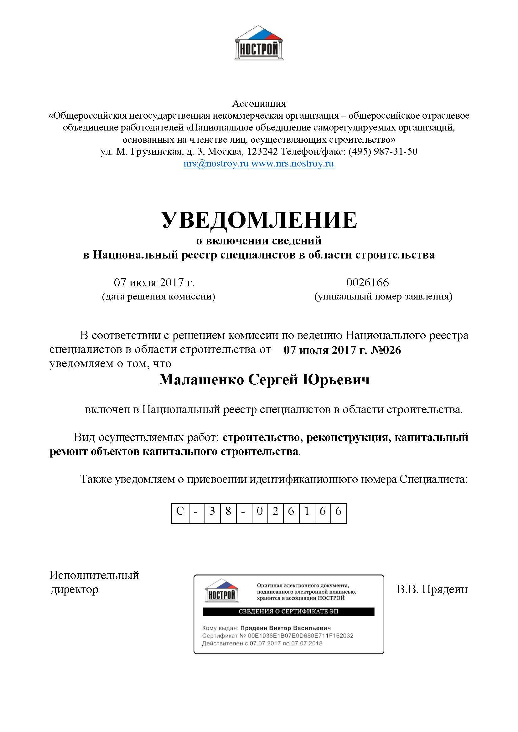 Наши специалисты включены в реестр НОСТРОЙ